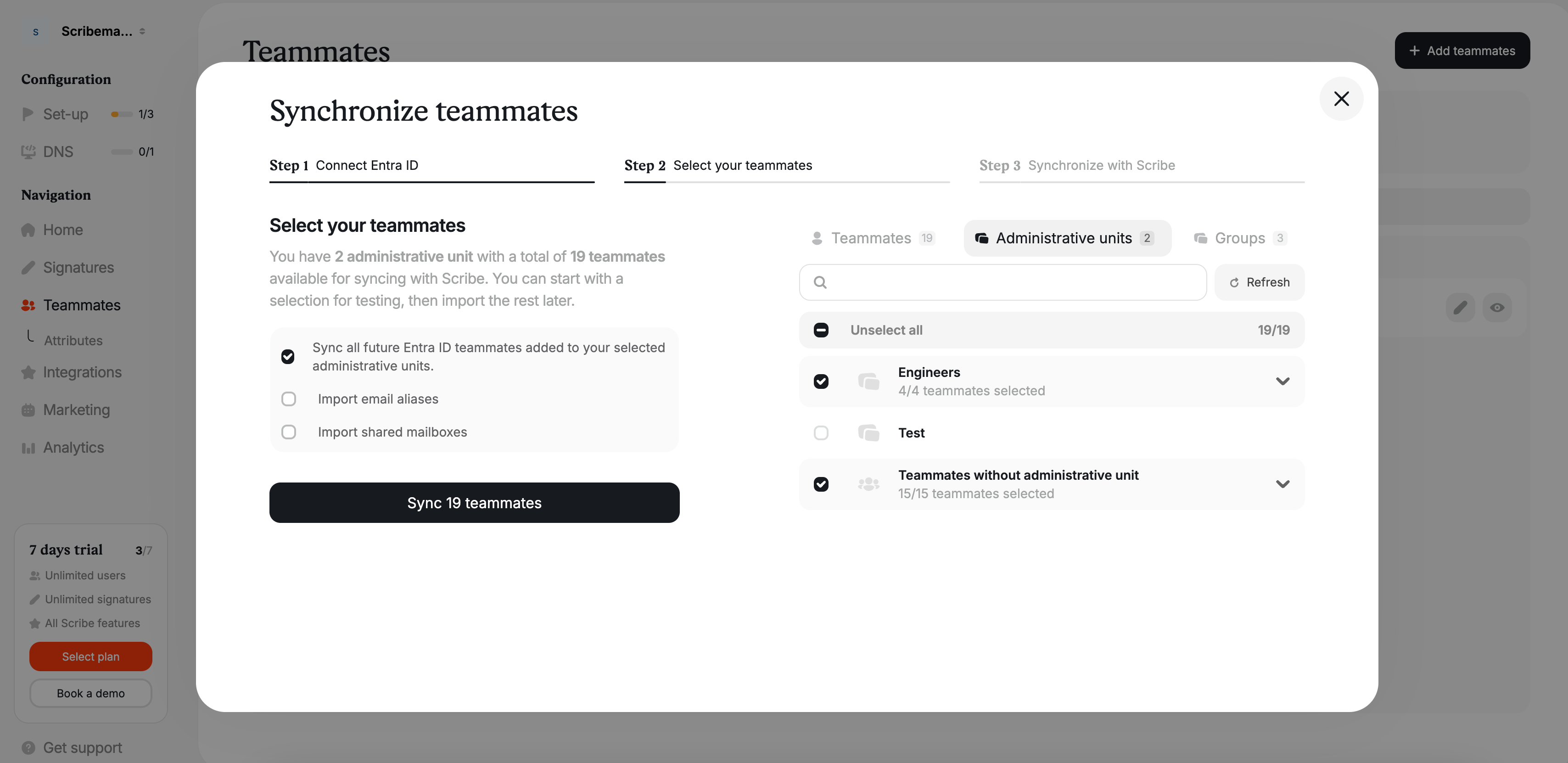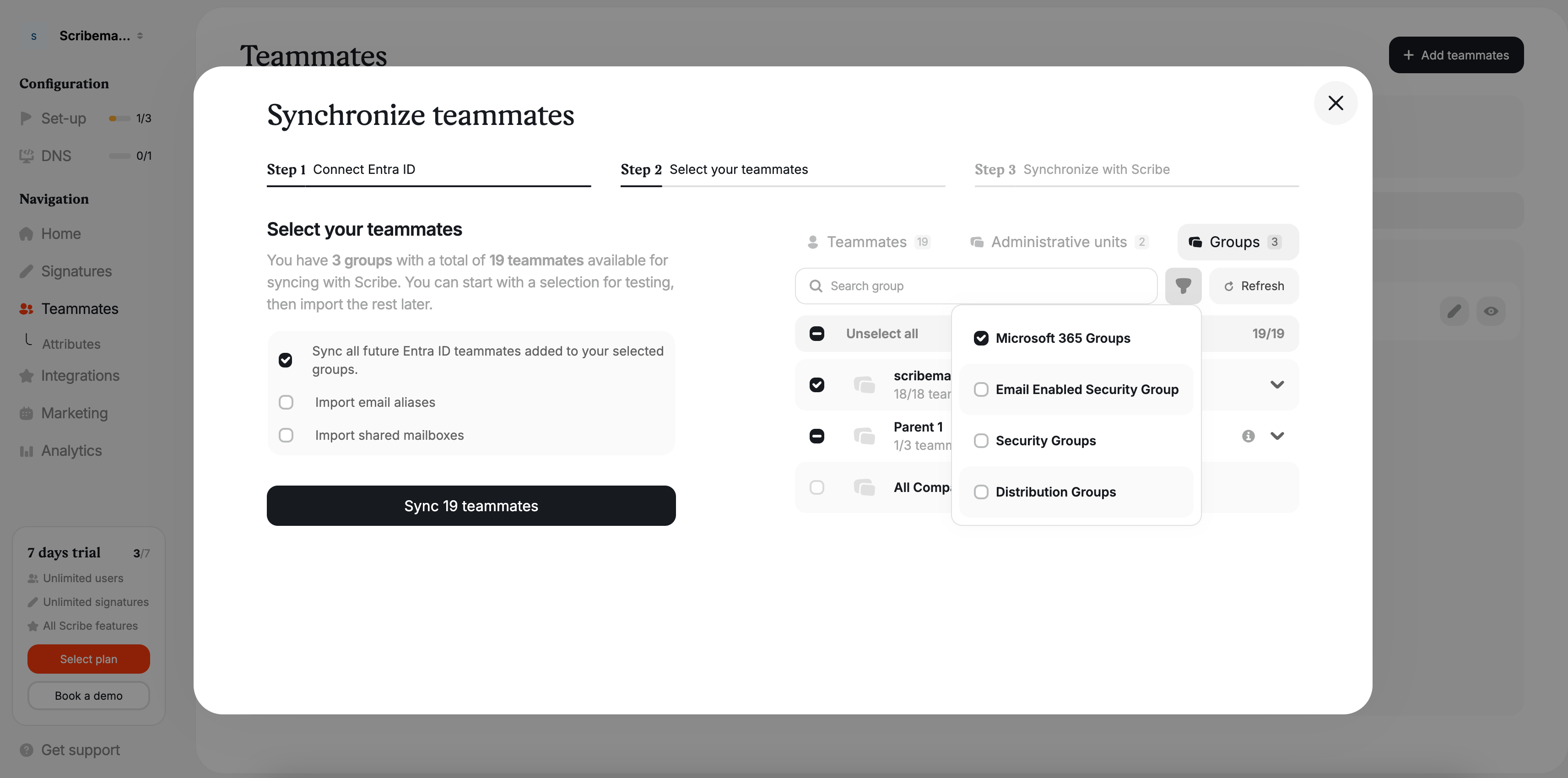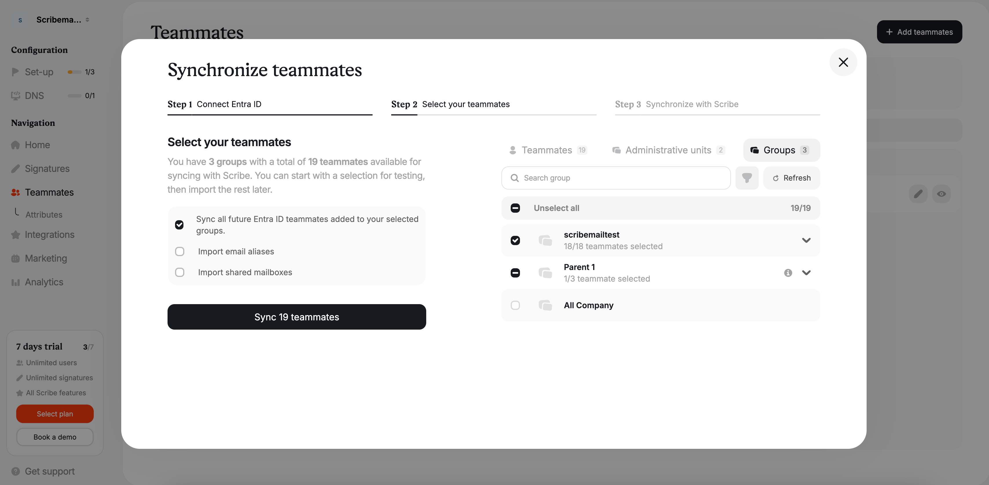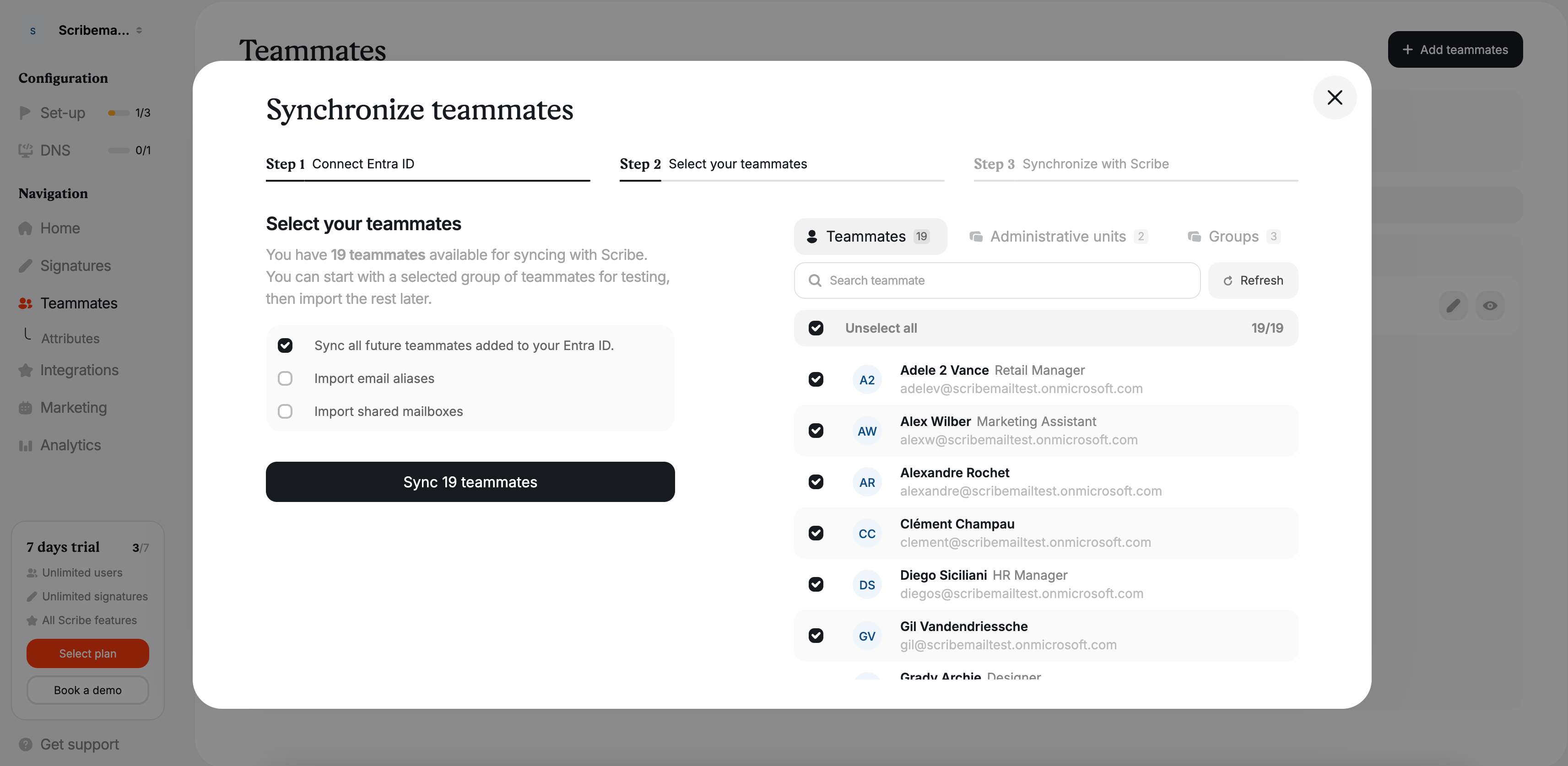 You will have the option to select which teammates you want to sync with Scribe. You don't have to sync all your Microsoft Entra ID. All changes made in your email provider directory will be automatically synced with Scribe.&#x20;