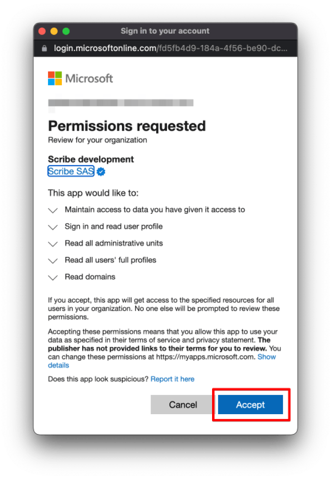 To enable one-click synchronization, you must grant Scribe permission to connect with your email provider. You need to be a Super Admin of your email provider to provide these permissions.