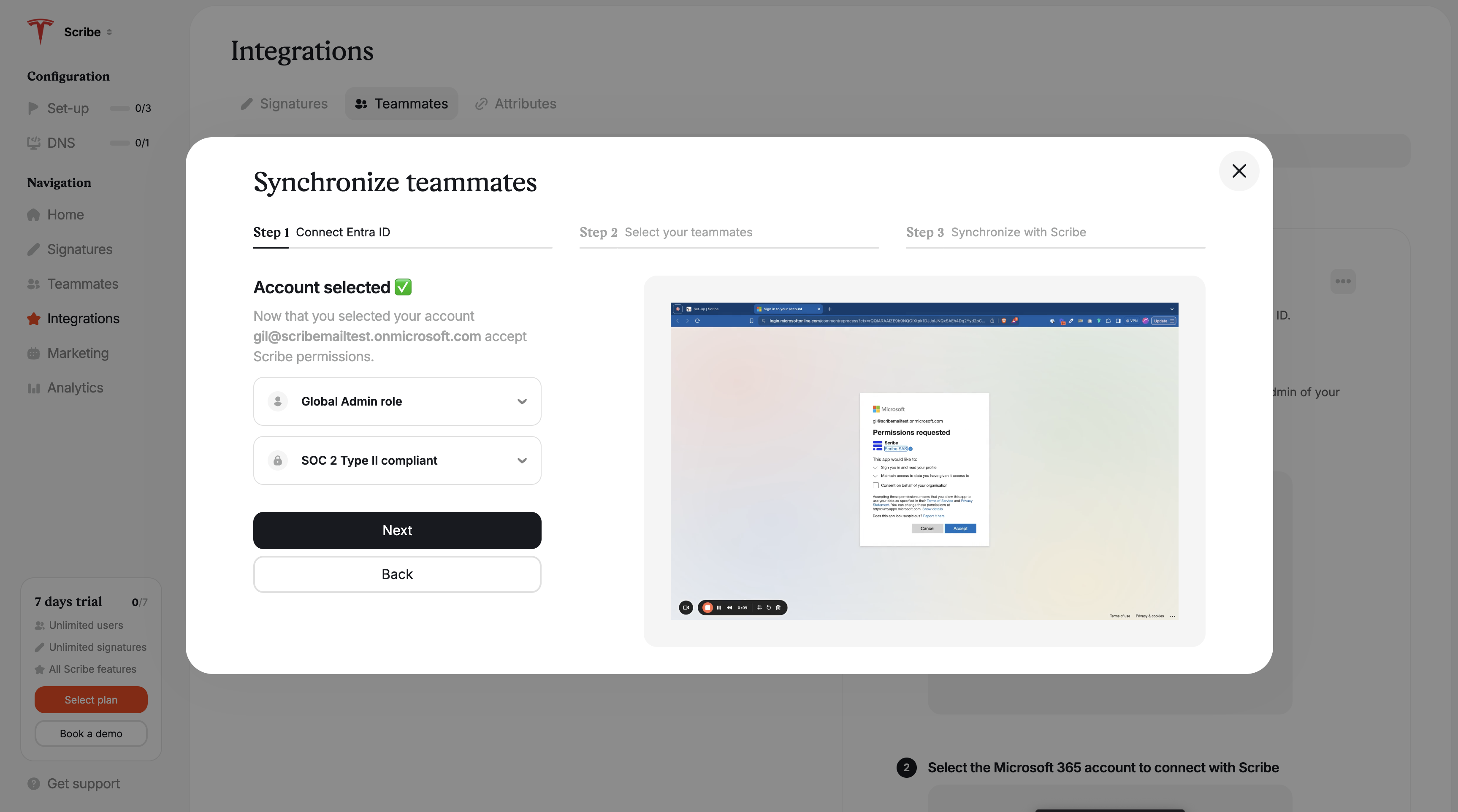 ### Select the Microsoft 365 account to connect with Scribe