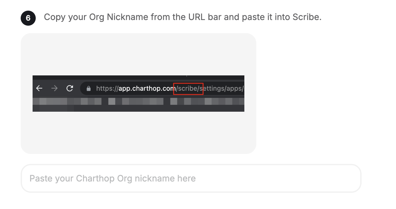 ### Copy your Org Nickname from the URL bar and paste it into Scribe
