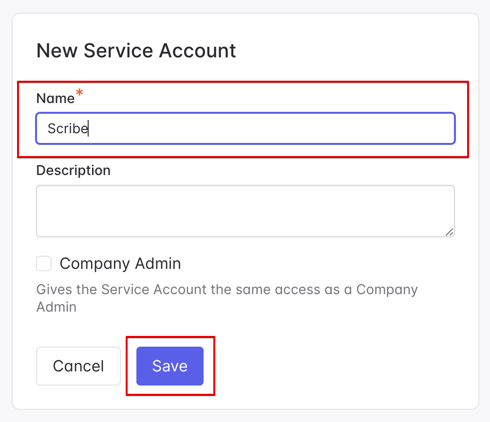 ### Give your Service Account key a name and click 'Save'.