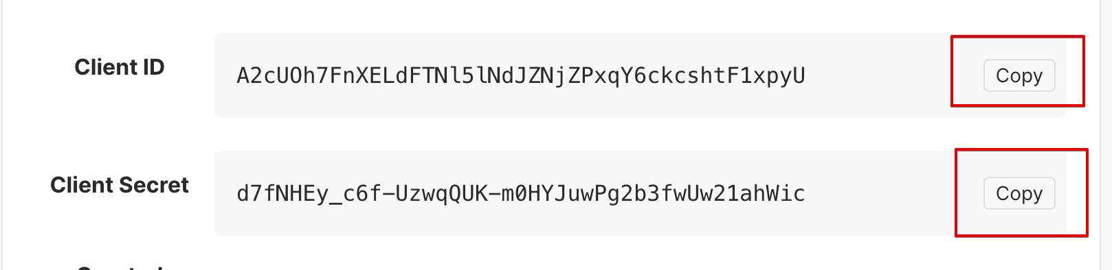 ### Copy the provided Client ID and Client Secret key, then paste them into the matching fields in Scribe.