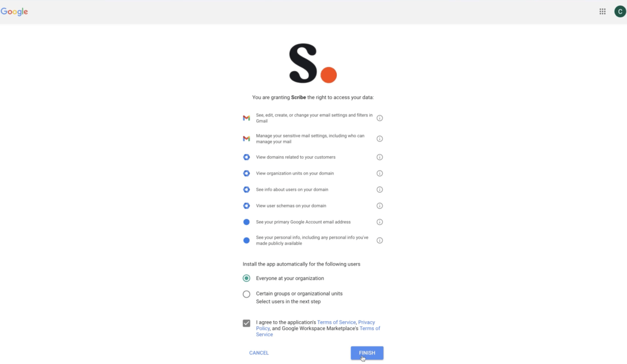 ✅ Only the admin of your Google Workspace has to install the Scribe app once.